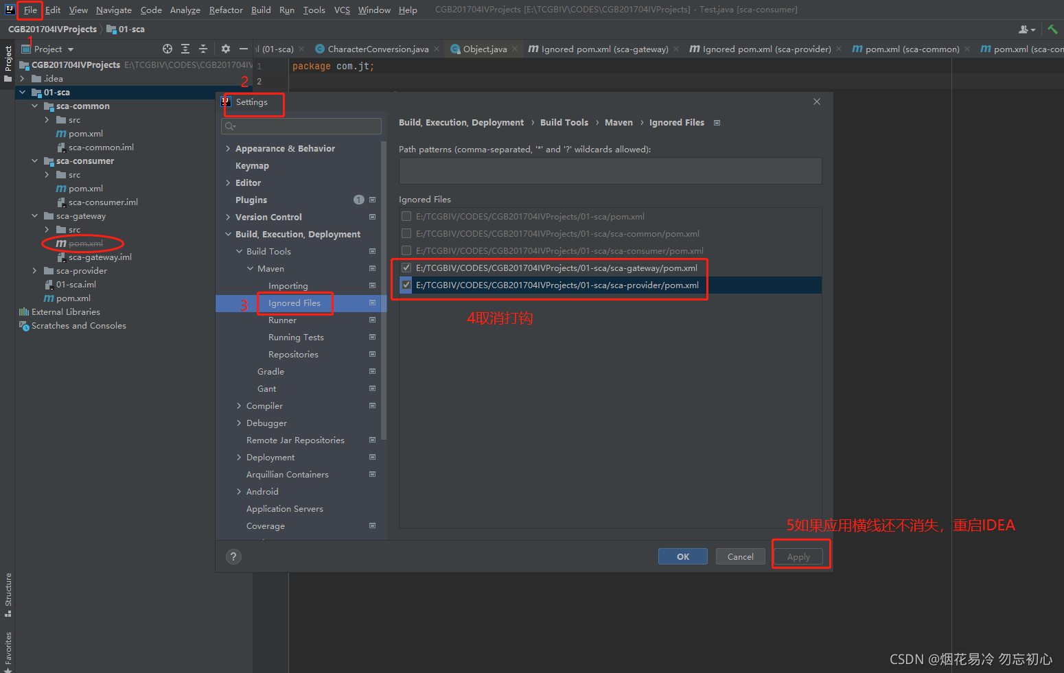 【解决】Idea中Pom.xml变灰并加横线 发表于 2022-04-27 分类于 Idea 阅读次数: 本文字数: 90 阅读时长 ≈ 1 分钟 问题描述:有时候我们在删除某些项目,重新新建之后有时候会发现pom.xml文件上有一条横线,解决方式如下: 设置完成后,重启IDEA。